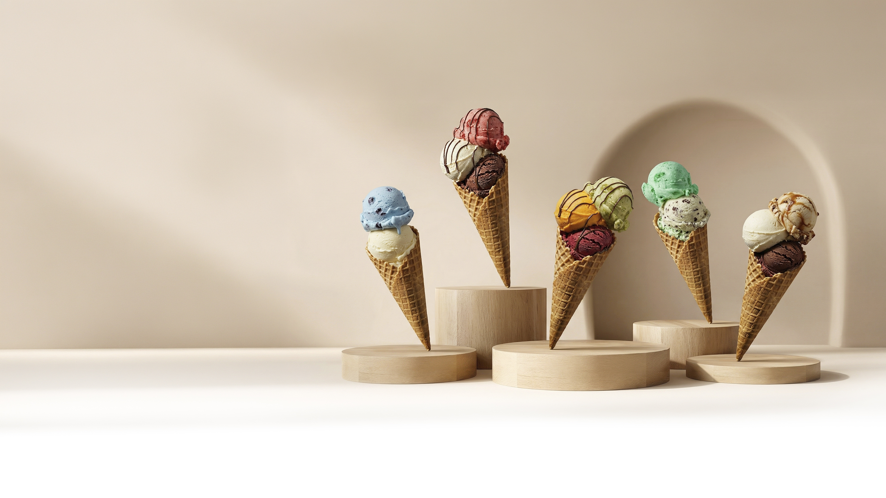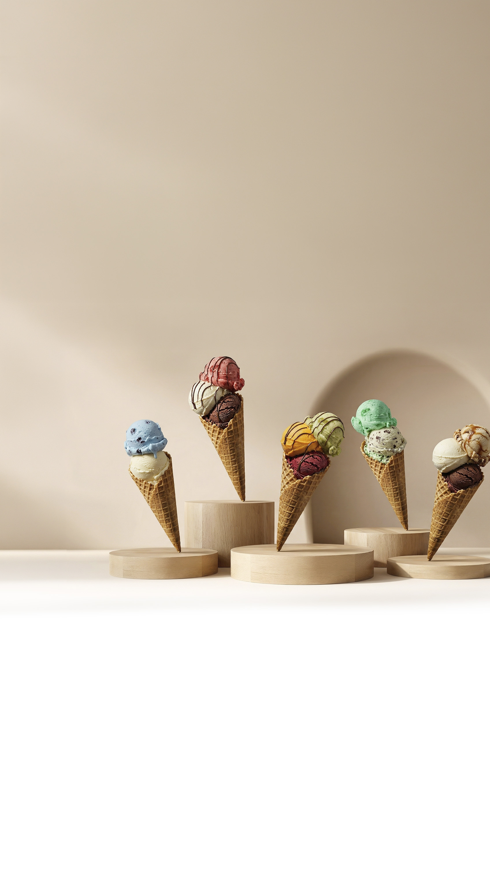 Natural ice cream prepared from carefully selected ingredients, with an intense yet balanced taste.